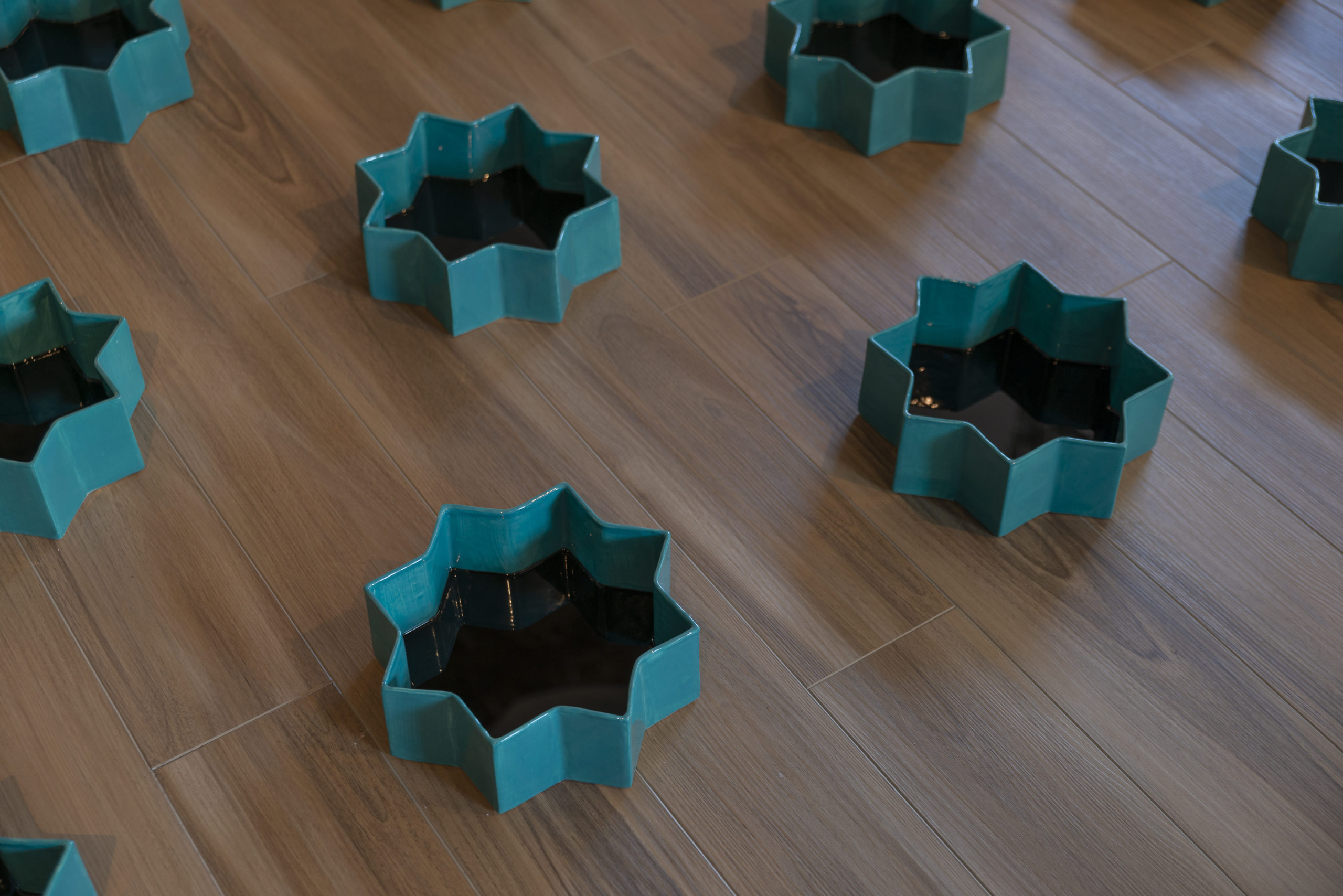 Tell All The Truth But Tell It Slant est une exposition multimédia qui adresse les atrocités d’un système de gouvernement oppressif en Iran qui se sert constamment et délibérément de la suppression sociopolitique pour contrôler ses citoyens. Du point de vue d’une Iranienne qui demeure au Canada, je crée des images, des objets et des espaces qui explorent les dynamiques du pouvoir, les moyens et les instruments du pouvoir, l’omission et la censure, entre autres. J’utilise l’allégorie et la représentation de l’imagerie culturelle de signification particulière provenant de l’art et de l’architecture persane et islamique, comme si c’était un langage formel pour moi. Tout en accentuant l’importance de la matérialité, mes œuvres contestent la dualité sujet-objet afin d’intégrer la politique plus profondément dans le domaine du matériel.